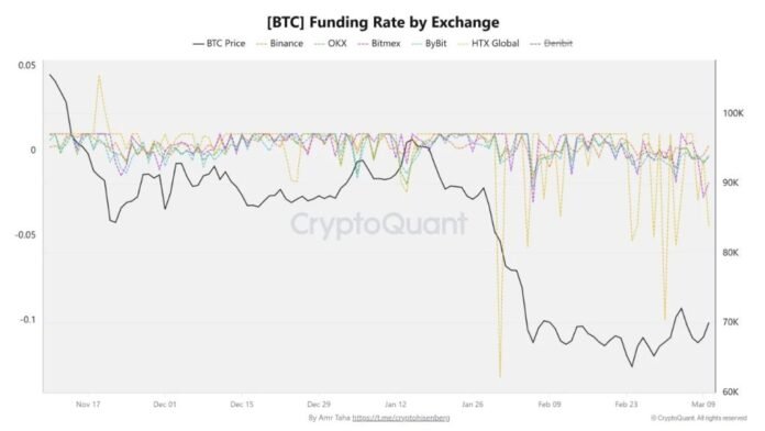 The move is more interesting when you look under the hood. Funding rates on Binance have been negative for roughly a week, dropping as low as -0.006 on March 10 and 11.