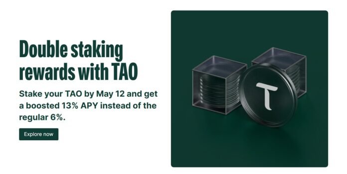Bitpanda is doubling the staking yield on Bittensor’s TAO token for 14 days. Starting today (April 28, 2026), the Vienna-based platform is running a two-week promotional offer giving users 13% APY on TAO staking, exactly twice the standard 6.5% rate. The window closes May 12.