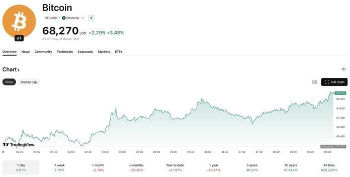 It comes as the total crypto market cap stayed flat overnight, dropping just -0.1% to $2.38 trillion, with the Bitcoin price trading at around $68,200 after a 0.7% move since yesterday.