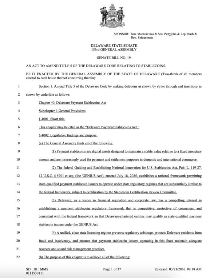The post Delaware Moves to Regulate Stablecoins Under Banking Framework appeared first on Cryptonews.