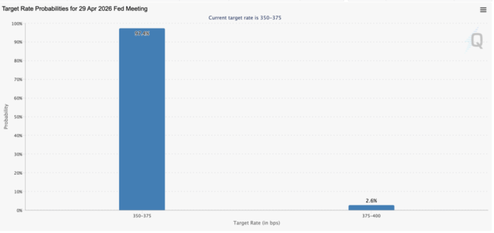 • Fed Signal: Powell’s Harvard comments sent CME FedWatch rate-hike odds tumbling from 25% to 5% for 2026, with the 2-year yield sliding eight basis points to 3.83%.
