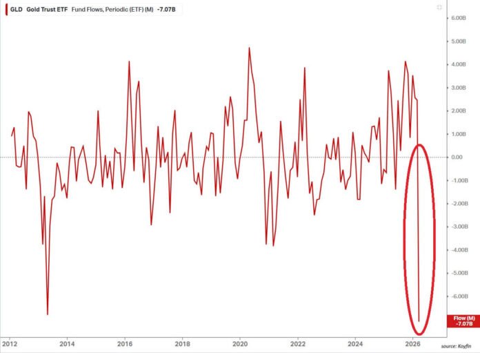 Additional fund data point in the same direction. The largest US gold-backed ETF, SPDR Gold Shares (GLD), recorded $7.07 billion in outflows in March, according to market data.