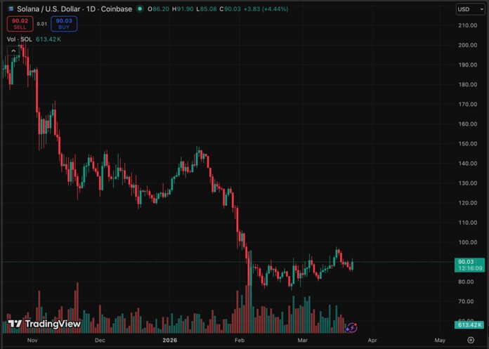 The technical setup is precarious; the asset is down nearly 69% from its January 2025 peak of $295.91, and DEX volumes have collapsed from $118 billion to just under $50billion in a single week, a staggering contraction of on-chain activity. While bulls point to the upcoming Alpenglow upgrade for sub-second finality, the immediate price action suggests exhaustion.