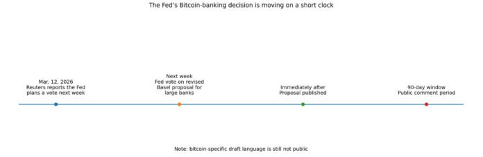 The Fed’s Bitcoin-banking decision is moving on a short clock, with a vote expected next week followed by a 90-day public comment period.