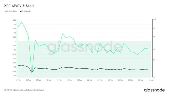 The MVRV Z-Score, one of the more reliable on-chain metrics in crypto, is showing XRP trading below its fair value threshold.